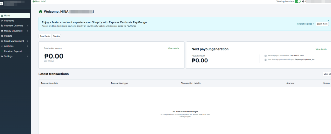- You'll be rerouted to your PayMongo Dashboard.