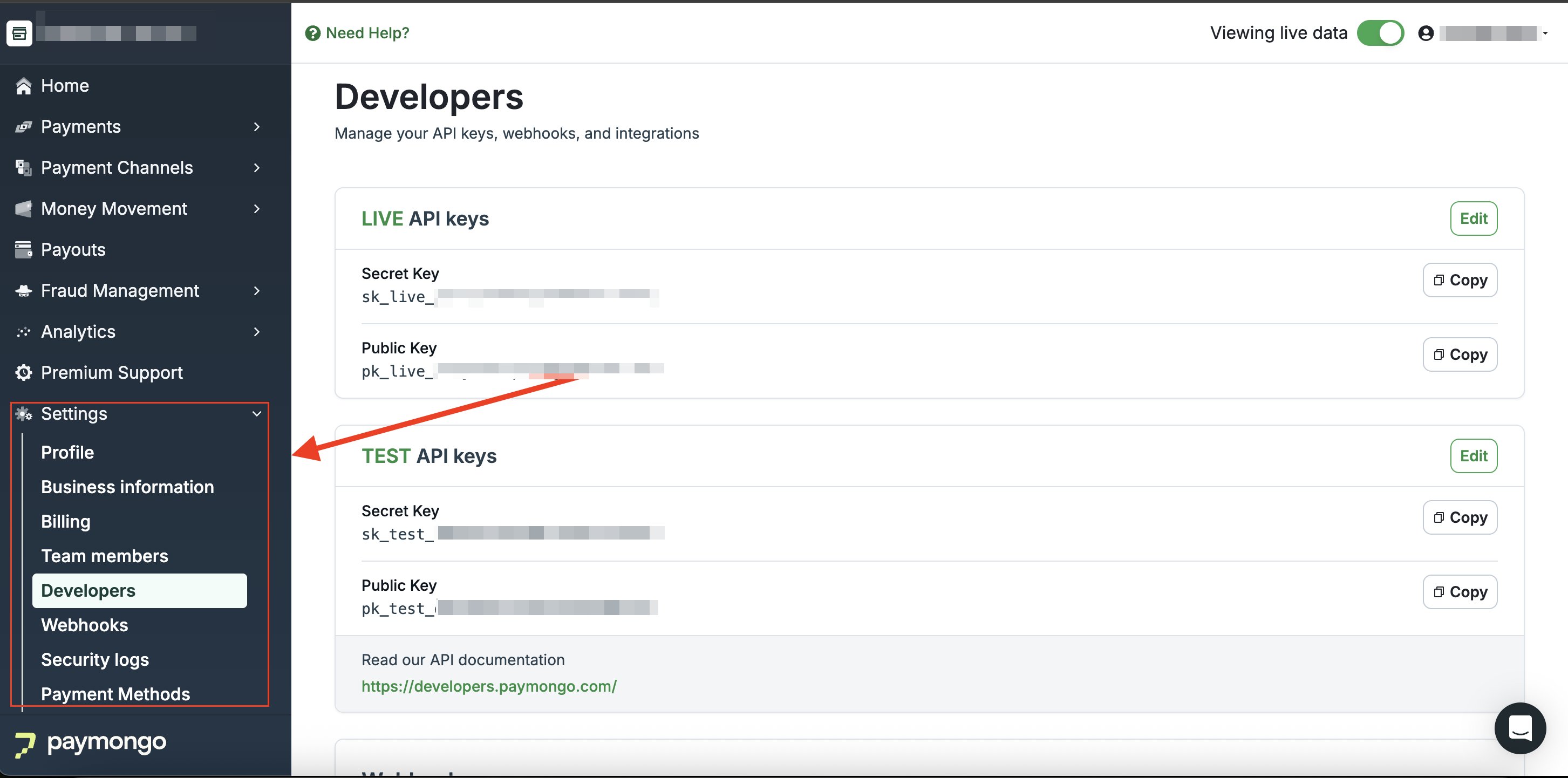 Accessing your API Keys is straightforward from your PayMongo Dashboard. This section will guide you in accessing and navigating your account's Developers Dashboard.