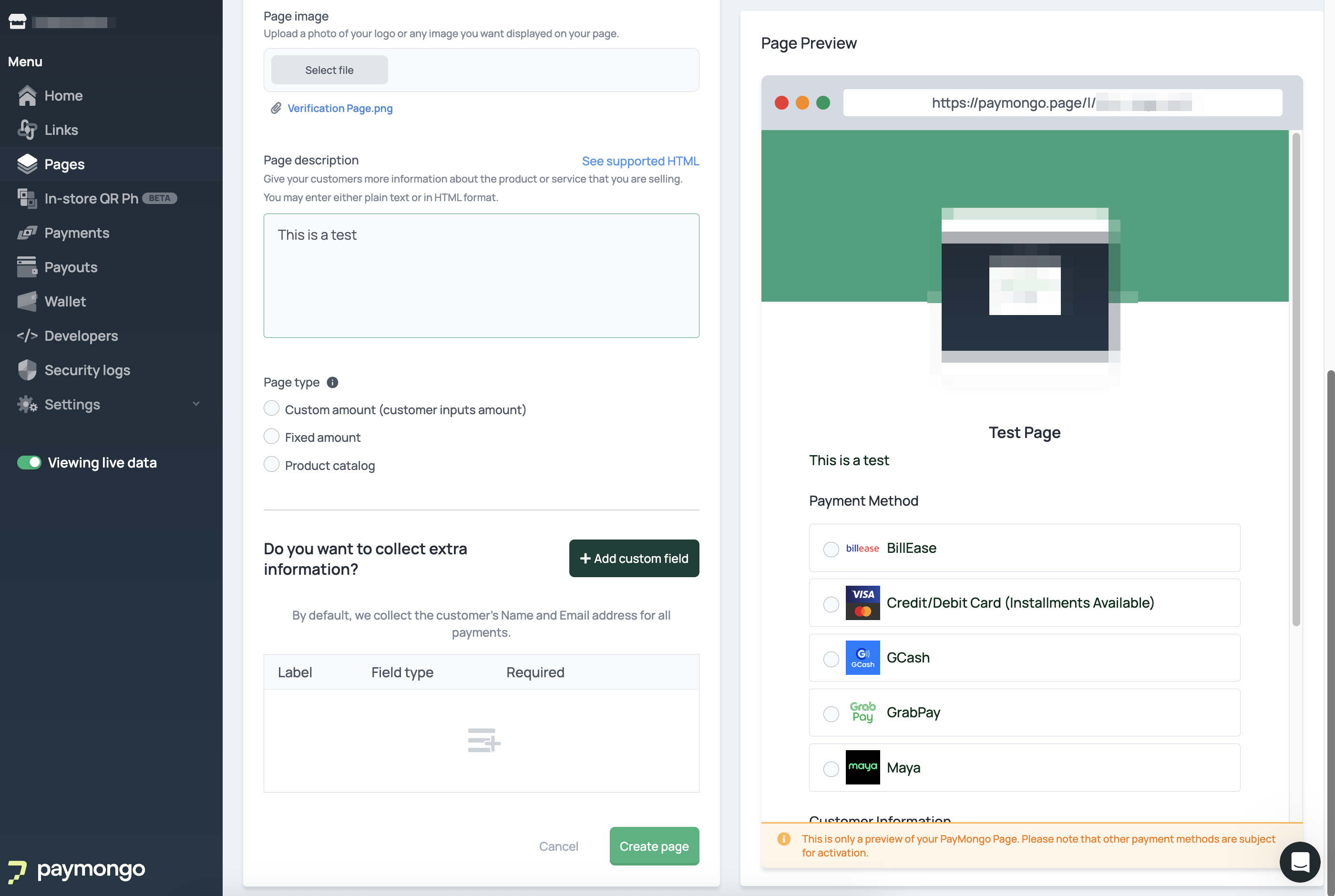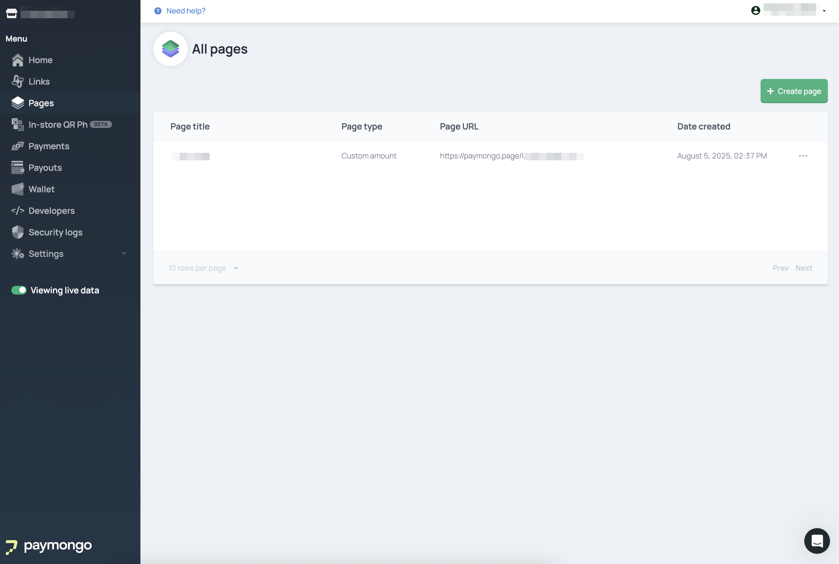 Your PayMongo Pages Dashboard is where you create and manage all your custom checkout pages: