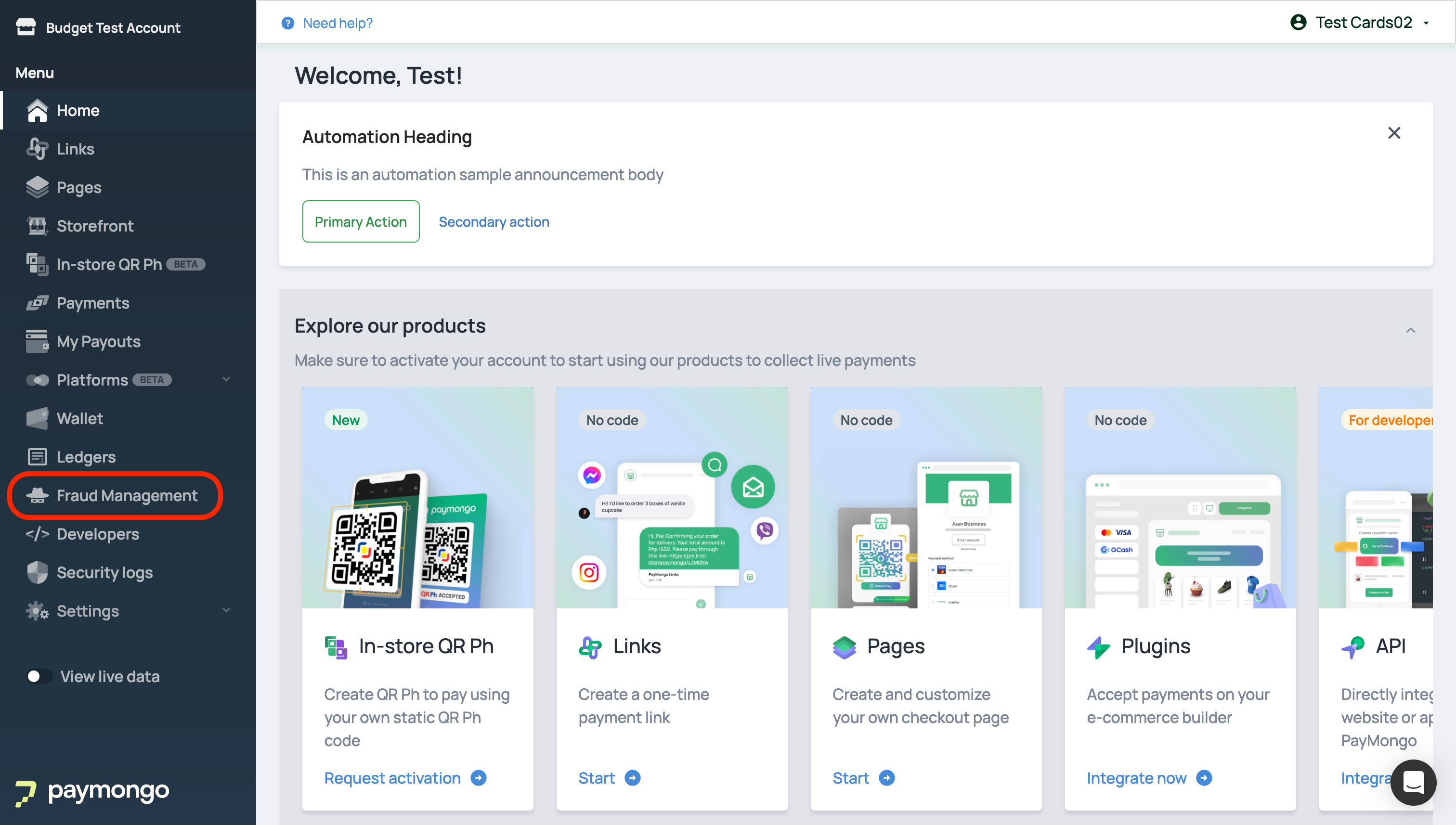 - In the main navigation menu on the left, locate and click on Fraud Management.