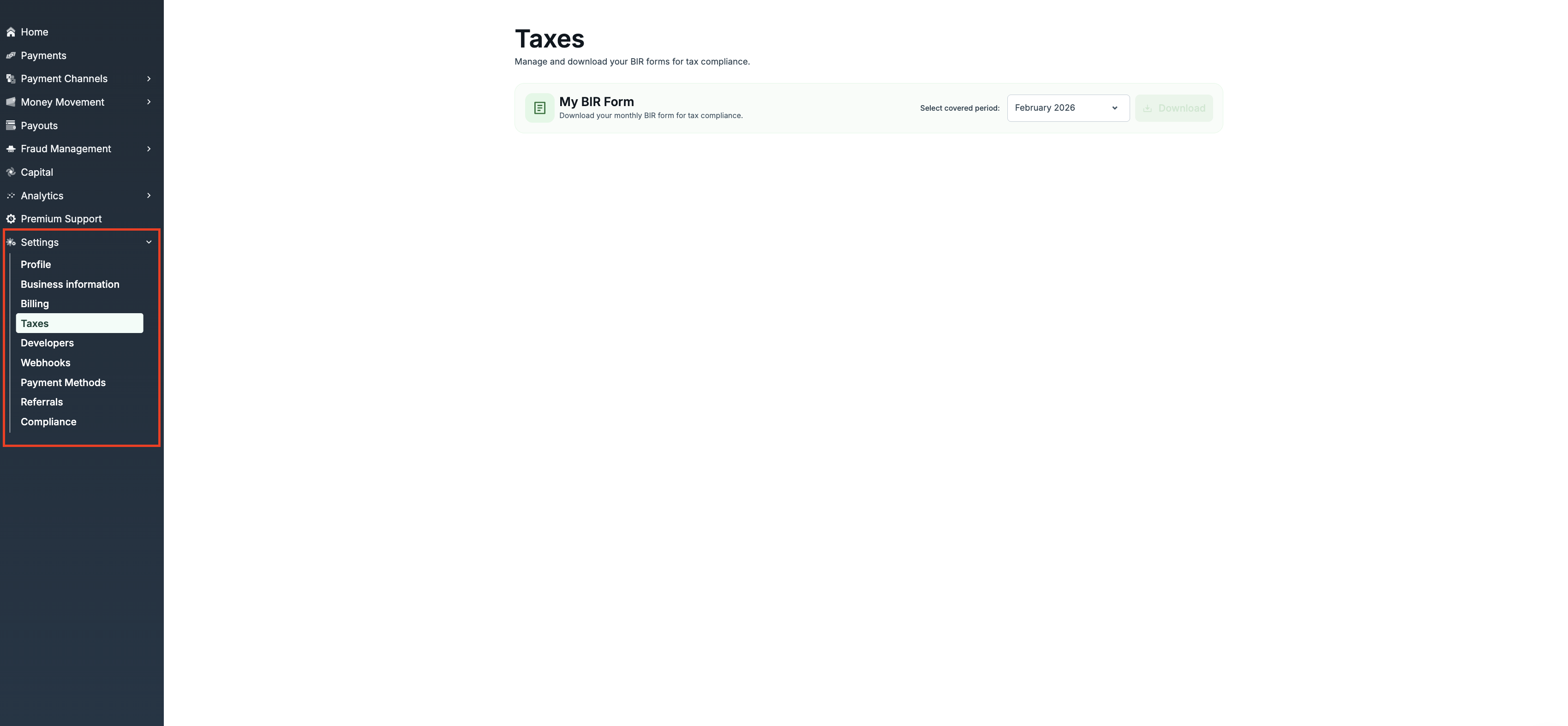 - Get your Form 2307: If tax was deducted, you can download your Certificate of Creditable Tax Withheld (BIR Form 2307) from your dashboard at Settings > Taxes.